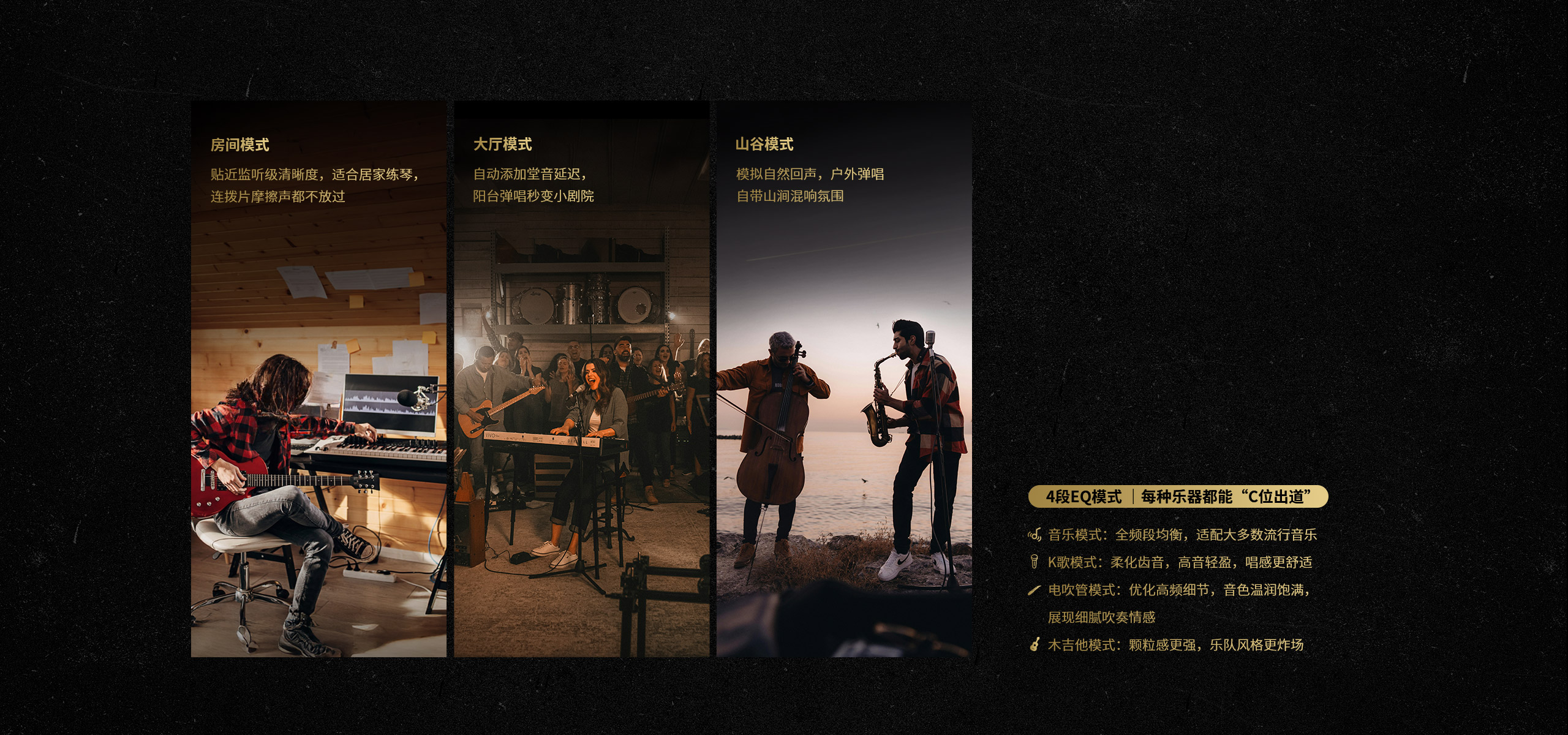 EQ音效:支持音乐\K歌\电子乐器\木吉他,多种乐器模式