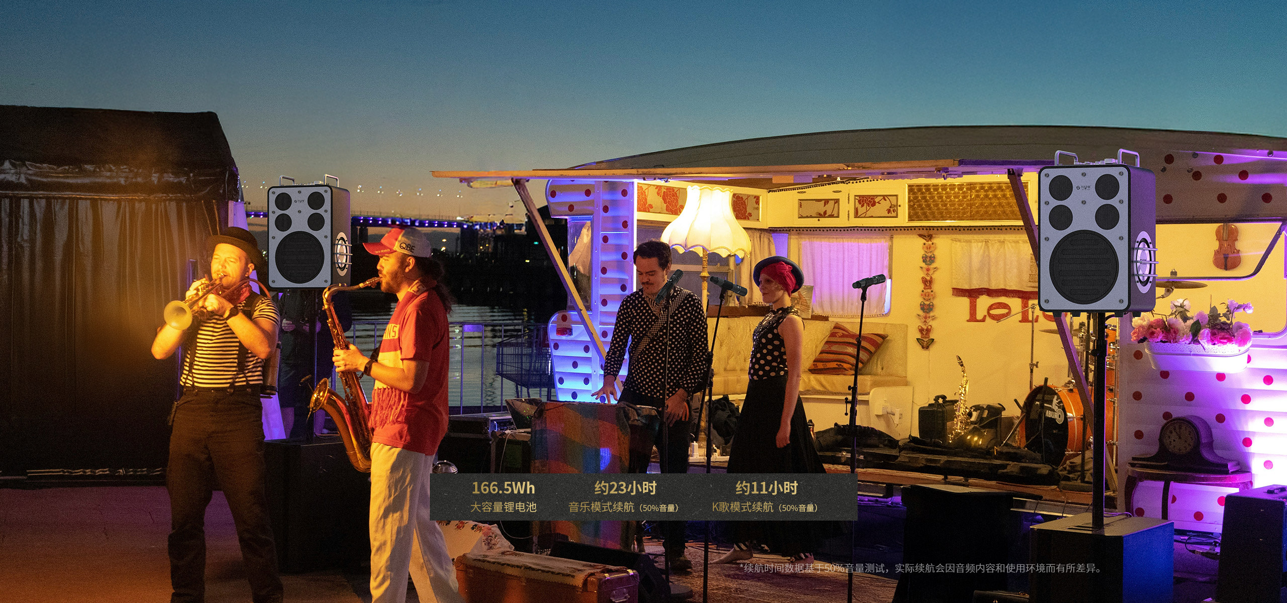 内置166.5Wh大容量锂电池,续航更持久,支持Type-C快充补能,随时开唱不间断。