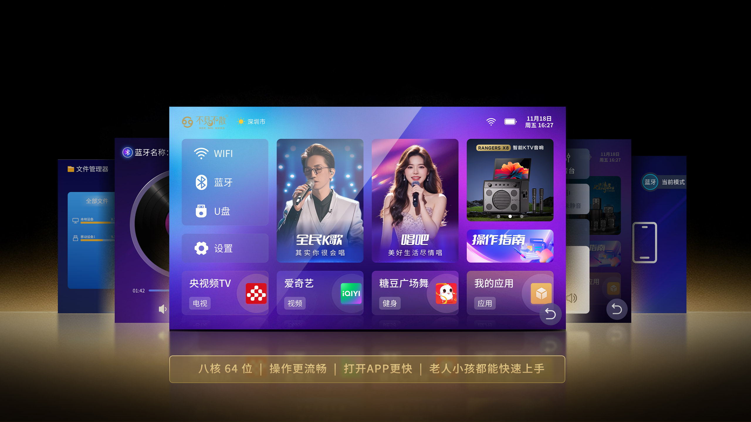 专为K歌和多场景娱乐而设计的高性能系统,轻松应对复杂多任务用起来,又快又顺手。