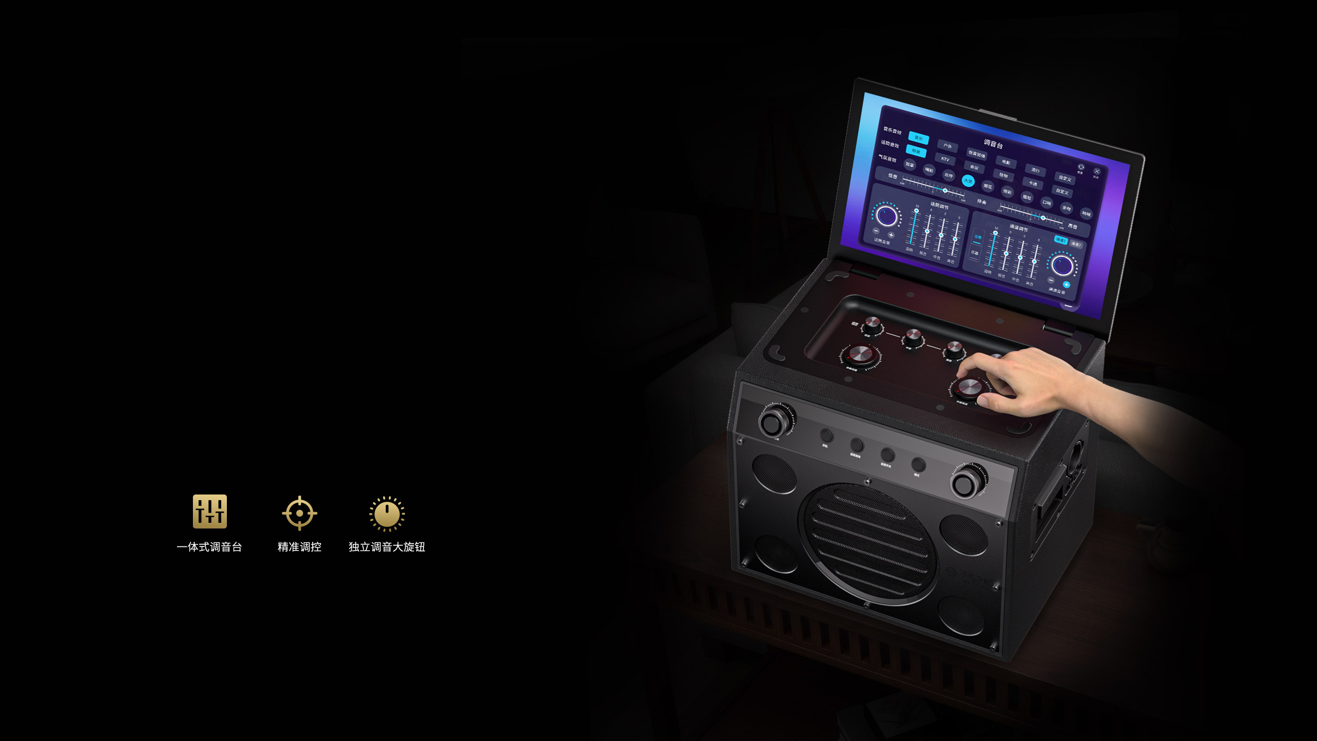 属K歌氛围。配合大旋钮或触控操作,调音顺滑便捷,适配多种